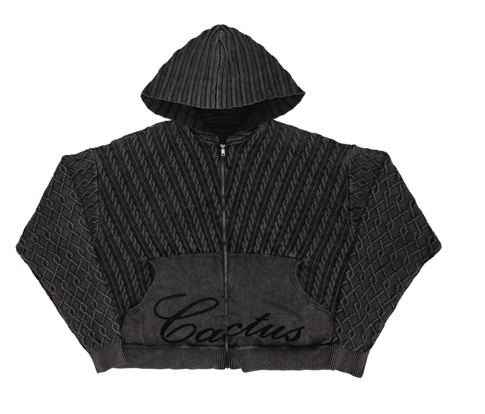 AZVA CHAIN KNIT HOODIE GREY
