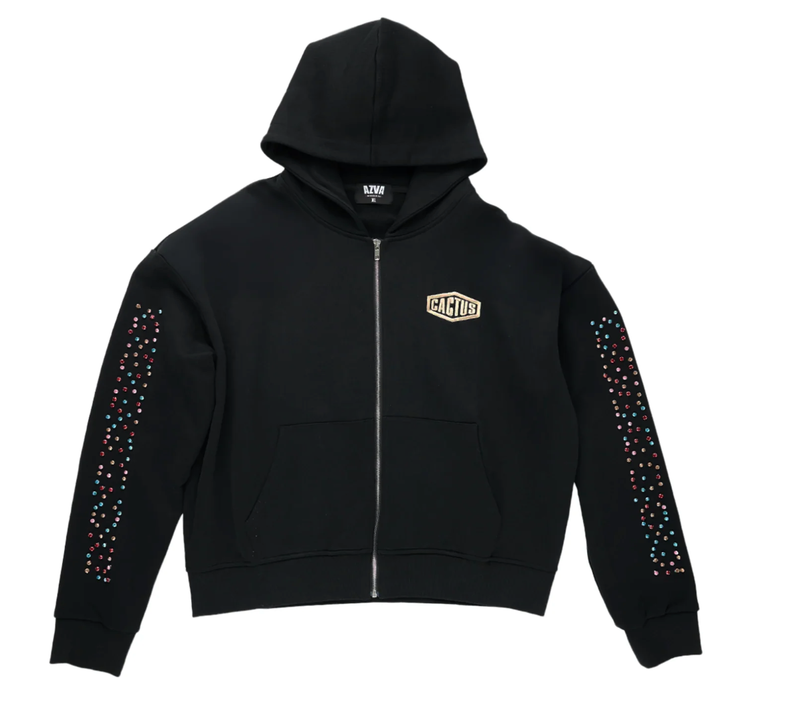 AZVA Crystal Cactus Zip Hoodie Black